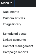 1. To upload your subscriber list, start by click the Menu tab at the top of your screen and select Contact management from the drop-down menu.