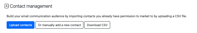 2. When you reach the Contact management page, click the blue Upload contacts button.